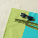 You'll be the coolest cowgirl at the swimming pool with this personalised beach towel. It features a campy retro style illustration of a cowgirl on a horse in a western landscape in bright colours and is ready to be personalised with a name in bold red letters.