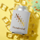 Name and the initial. The letter is replicated in five colours from dark brown to gold, top to bottom. Name is in darkest colour. Also, choose you choice of colour for the background (defaults to grey. This would make a great take-away for a family gathering.