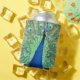 Peacock with brilliant blue body feathers and green and blue tail feathers. Proud bird has his tail feathers spread out fully. Image repeated on Front and Back.