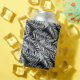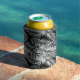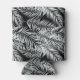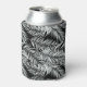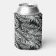 Can cooler is shown in a black and white tropical palms print.