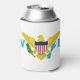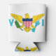 This can cooler pays tribute to the Virgin Islands' rich cultural diversity and natural beauty, featuring elements reminiscent of its iconic flag. The design prominently displays a white field with a simplified version of the Great Seal of the United States, which includes an eagle holding arrows and an olive branch, accompanied by the letters "V" and "I" symbolising Virgin Islands.