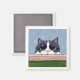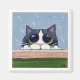 Whimsical cat art fridge magnets make great gifts for cat enthusiasts. Magnet featuring a sad cat peering through a window with rain poring down all around! Created from an original painting © 2008 Lisa Marie Robinson