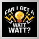 Searching for funny Electrician gifts or humourous electrician designs? Grab this cool Can I get a Watt Watt graphic for yourself or as a gift for an electrician, electrical engineer or lineman.