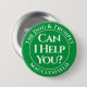 A badge for staff, saying "Can I Help You?" Change the wording to your details. Staff badge. Official badge in Green and White.