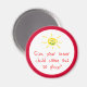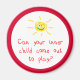 Share a little humour with this funny magnet that says "Can your inner child come out to play" with a fun smiling sun and crayon writing.