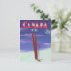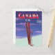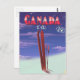 Canada Air mail to ski postcard illustration of a set of ski poles in the winter canadian landscape.