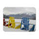 COPYRIGHT Cindy Miller Hopkins / DanitaDelimont.com | CN01 CMI0065.jpg | Canada, Alberta, Jasper, Jasper NP. Fairmont Jasper Park Lodge. Colourful chairs around frozen lake, Lac Beauvert.
