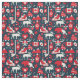 Canada Canadian Christmas Winter Moose Pattern Fabric. Beautiful red and white winter Canadian elements against a navy blue background. Accented with a moose, christmas trees, Canada flag, maple leaf, and ice skates. Perfect for xmas and the holidays.