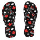 Flip flops featuring a maple leaf and curling rock pattern in red, white and grey on black background. Perfect for curlers and curling fans.