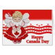 Canadian Angel Features wavy red waves and Mapleleaf background She holds a heart with a red Mapleleaf. Text says... Happy Canada Day on the front. customise the inside greeting, message and closing