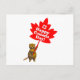 A Canadian beaver character is holding a giant red maple leaf that says Happy Canada Day!