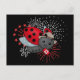 The holiday ladybug wearing a Mounties hat and waving the Canadian flag with fireworks in the background for Canada Day.