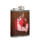 The flask itself is fine. It’s a cheap flask, obviously bought in bulk, however am prepared to overlook that. Given that it is a personalized item, I would have liked to have seen gift boxing instead of the generic packaging. Terrible printing, and/or quality. It’s a cheap, tacky vinyl. It is not cut straight and is also applied in a way that it is overhanging the bottom, causing the glue to catch on items and it will eventually roll and tear, damaging the wrap.