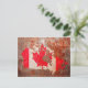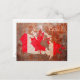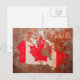 The Canadian flag, red and white with a red maple leaf in the centre, in the shape of the country of Canada. Displayed on a distressed background.