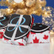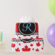 Deconstructed Canada flag featuring red Canadian maple leafs placed at random around a stunning black and red monogram button studded with diamonds. Great contrasting colours and intricate design. All images and artwork ©allmonograms store.