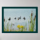 A digital painting of Canada Geese (Branta canadensis) swimming with cattails (Typha latifolia) and other vegetation in the foreground.