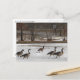 This comical postcard features a snowy winter scene. Five Canada Geese who just happen to be marching to the right in front of a road sign that reads: Keep Right.