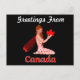 Cute Canadian Pixie holding a red Maple Leaf. Text says Greetings from Canada. Greetings text can be customised by you.