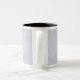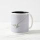 Canada, Quebec. Snowy owl flies low over snow. Two-Tone Coffee Mug