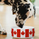 Red and white Canada tie with Canadian flag and maple leaf pattern.
