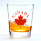 Red and white Canada shot glass with Canadian flag and maple leaf. Customisable text. Great gift for Canadians.