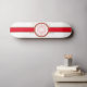 A calligraphic red maple leaf design with interlaced vector outlines is set on a gold bordered red stripe against a white background. It's bilingually captioned with Canada Since 1867. Easily edited and personalized.