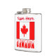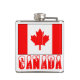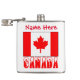 Personalised hip flask showing snow capped letters read CANADA and are found underneath the Canadian Flag. Add your name to personalise the flask or create a gift. The Canadian flag has a white centre with a red maple leaf inside. One on the right and on the left of the white area are two red stripes. Fun to take to family reunions, clubs, and travel groups. Terrific gift for your favourite Canadian. Lovely to use on Canada Day.