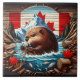 Canadian Beaver Building a Dam in Autumn River Ceramic Tile