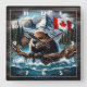 Canadian Beaver by Lake With Mountains and Flag Square Wall Clock