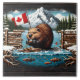 Canadian Beaver, Flag, Mountain, Ocean Ceramic Tile