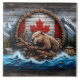Canadian Beaver in Front of Mountain Landscape Ceramic Tile