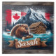 Canadian Beaver in Water With Logs Near Mountains Ceramic Tile