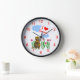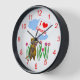 Wall clock with my design of a cute beaver holding up a sign that says "I love Canada" with a red heart.