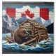 Canadian Beaver With Flag and Lodge in Nature Ceramic Tile