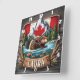Canadian Beaver With Flag and Mountains Square Wall Clock