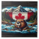 Canadian Beaver With Flag in Mountain Stream Ceramic Tile