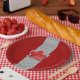 An all Canadian stylish maple leaf custom design gift for all festive occasions and friendly gatherings. Presented here as a red chrome like applique on a racy flag colours carbon fibre style background print. A great gift to wear or to share. A design statement that is sure to make an impression on formal and on casual occasions. Or perhaps a last minute gift for yourself or for someone special on your list.