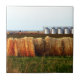 Three strong prairie symbols: hay bales, silos and freight transport train. The Canadian prairies span Alberta, Saskatchewan and Manitoba. This photo was taken in Alberta, just outside of Calgary. This ceramic tile is fully customisable.