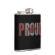 The flask itself is fine. It’s a cheap flask, obviously bought in bulk, however am prepared to overlook that. Given that it is a personalized item, I would have liked to have seen gift boxing instead of the generic packaging. Terrible printing, and/or quality. It’s a cheap, tacky vinyl. It is not cut straight and is also applied in a way that it is overhanging the bottom, causing the glue to catch on items and it will eventually roll and tear, damaging the wrap.