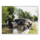 An art design of a narrowboat approaching a lock and a man fishing. Canal boats, known in the UK as narrowboats, were originally used to transport goods around the country. They are now used mainly for leisure and attract people from all over the world to enjoy our rural countryside. These boats look very pretty with their brightly coloured cabins, traditionally blue, red or green. Flowers and castle designs also adorn the more traditional boats.
