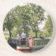 I'm not sure how much moisture these will soak up, haven't had a chance to try them out, but they look good and I like the cork backing. The printing is fine ~ and really looks cool with an artisan's hand made "Hurricane Martini" glass sitting on top of my painting (on the coaster) in my studio.