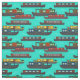 Funky turquoise blue fabric patterned with hand drawn canal narrowboats, barges and houseboats. The perfect fabric for your houseboat interior decor
