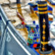 An art design of a narrowboat roof with ornate chimney. water can and mop. Canal boats, known in the UK as narrowboats, were originally used to transport goods around the country. They are now used mainly for leisure and attract people from all over the world to enjoy our rural countryside. These boats look very pretty with their brightly coloured cabins, traditionally blue, red or green. Flowers and castle designs also adorn the more traditional boats.