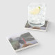 The coasters are gorgeous, a quality feel and heavy weight. They look like a precious archeological find. A rustic stone juxtaposed with a modern floral black and white print. I like the way the print goes slightly imperfect on the cut stone edges giving them a kind-of natural beauty.