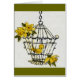 Cute little yellow canary in an old fashioned cage with yellow dafodills. Great design for all kinds of occasions.