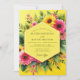 Radiate pure joy with this bright and sunny artistic arrangement. A vibrant palette of canary yellow and fuchsia comes to life through painterly sunflowers and brilliant daisies. Surrounded by lush green foliage, this design evokes the warmth of a sun-drenched summer meadow, perfect for a lively and memorable union.
