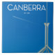 Canberra Australian travel poster art featuring contrails and the Australian Parliament.