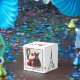 Square classic style favour box with an image of a black and red cancan dress, feminine legs clad in black striped thigh-high stockings, a black top hat adorned with red feathers, a red feathered boa, and a red feathered fan on a grey and white French traditional background. Black border. The sides have an image of the Eiffel Tower and “Ooh la la!” is printed in black French script on the top. See the entire Cancan Favour Box collection in the PARTY FAVORS section.