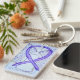 Awareness ribbon angel keychain features the art of a violet awareness angel painting. The art side notes "Cancer Awareness" and the reverse side states "I Hope & Support Awareness for a Cancer Cure!" Add your own custom words for personalised angel art cause awareness custom charm key chains! You can also remove the text for an art only angel pendant key chain. The violet awareness angel ribbon painting art keychains can be customised with personalised messages to make great awareness cause art key chains for fundraisers, awareness gifts, or other special events. Give this angel art keychain charm as an awareness ribbon gift for any occasion.