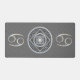 This mandala was designed for the zodiac sign, Cancer, depicting a moonstone in the centre surrounded by elements representing the sign, such as the symbol for the sign, the constellation, and the alchemical symbol for Water, as well as filigree vines and weaves wrapping it all into a solid image in shades of pearly white-blue, silver, and grey.